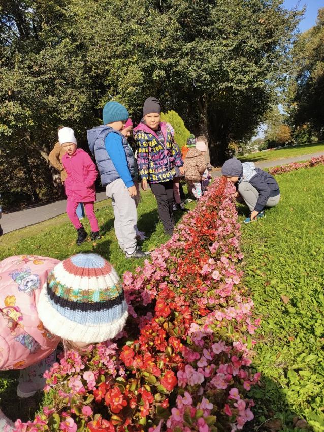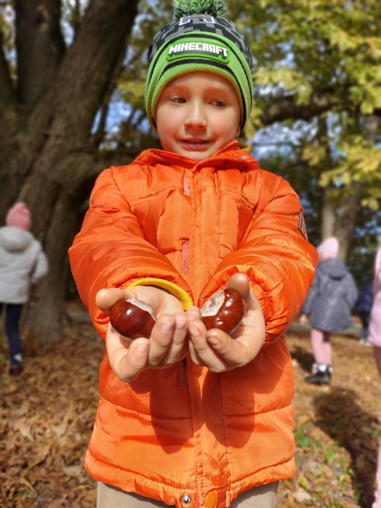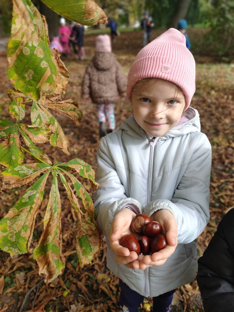 Dzieci z grupy Jeżyki wykorzystując piękną pogodę odbyły wycieczkę do Parku Miejskiego. Park odkrył przed nami swoje piękno. Przedszkolaki przemierzając parkowe alejki podziwiały uroki jesiennego krajobrazu, obserwowały przyrodę i wsłuchiwały się w jej odgłosy. Dzieci zbierały kasztany i kolorowe liście.