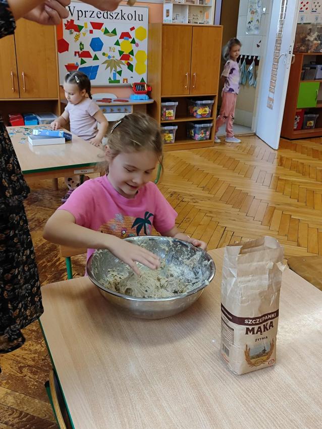 16 X to święto nietypowe w naszym kalendarzu - Dzień chleba. W tym dniu dzieci uczestniczą w zajęciach, by dowiedzieć  się, jak powstaje chleb. Przedszkolaki poznają etapy produkcji od ziarenka do bochenka, wykonują własne wypieki a na koniec smakują pyszny chleb.