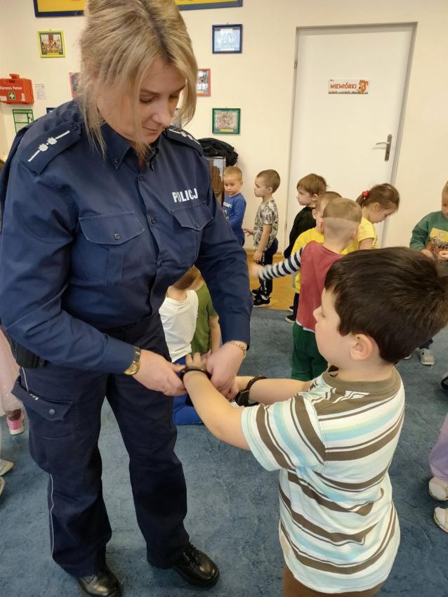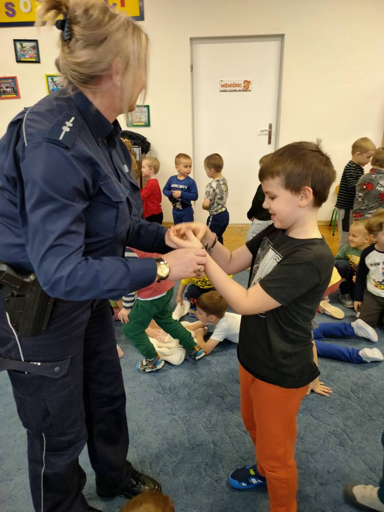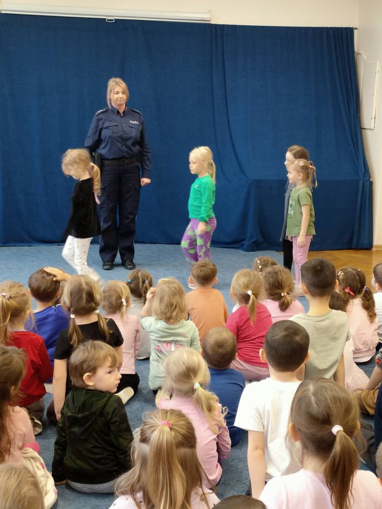 17 XI w naszym przedszkolu odbyło się spotkanie z policjantkami. Tematem spotkania było utrwalenie z dziećmi zasad ruchu drogowego.Pani policjantka w formie praktycznej, przypomniała podstawie zasady zachowania się podczas przechodzenia przez jezdnię. Wytłumaczyła jak należy zachować się w kontaktach z obcymi. Policjantka poinformowała i zademonstrowała dzieciom w jaki sposób należy zachować się podczas ataku psa. Na zakończenie wizyty przedszkolaki otrzymały kolorowanki.