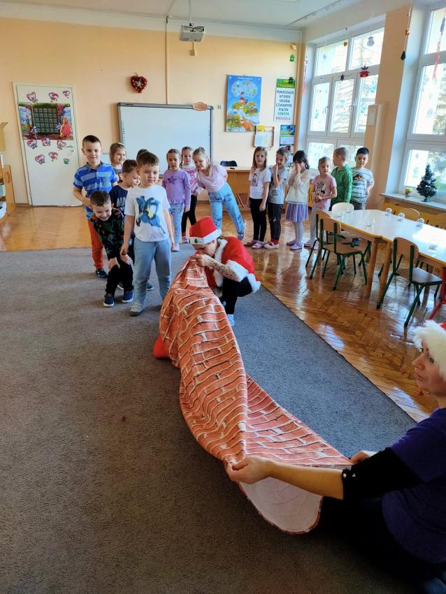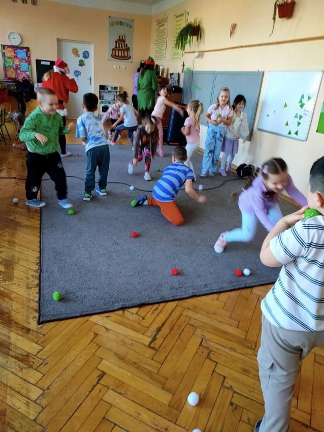 Zabawy ruchowe pełne śmiechu, bitwa na pluszowe śnieżki , tworzenie własnej kuli śnieżnej oraz wizyta bohatera-Mikołaja dostarczyła przedszkolakom wiele radości. Dziękujemy za miło spędzony czas.