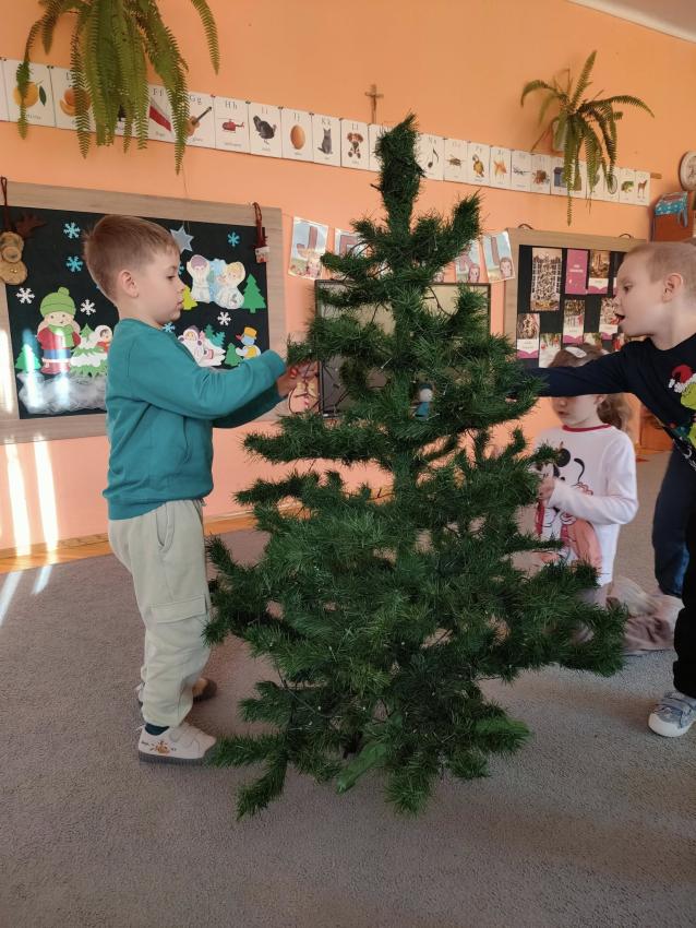 Ubieranie choinki to dla dzieci wyjątkowy i radosny moment stanowiący ważny element tradycji świątecznych.Zajęcia miały na celu wprowadzenie świątecznej atmosfery w sali.